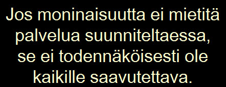 Jos moninaisuutta ei mietitä palvelua suunniteltaessa, on Salovaaran mukaan todennäköistä, ettei se ole kaikille saavutettava.