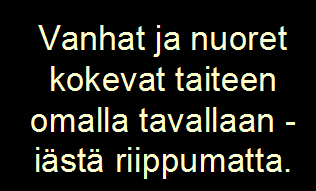 Muuten vanhat ja nuoret kokevat taiteen omalla persoonallisella tavallaan, eikä se riipu iästä.